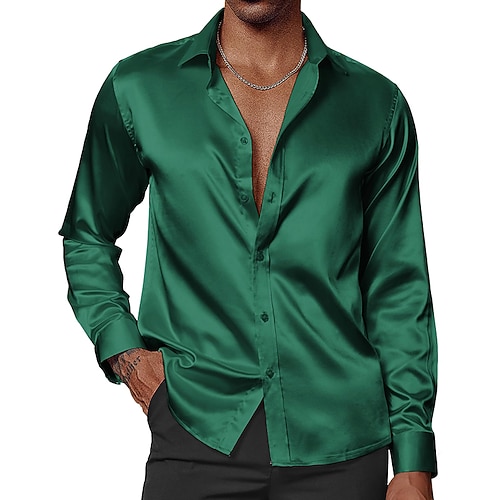 Per uomo Camicia Camicia in raso Camicia elegante Camicia casual Camicia con Bottoni Camicie sbottonate Semplice Formale Matrimonio Nero Bianco Vino Verde Manica Lunga Bavero Primavera Autunno