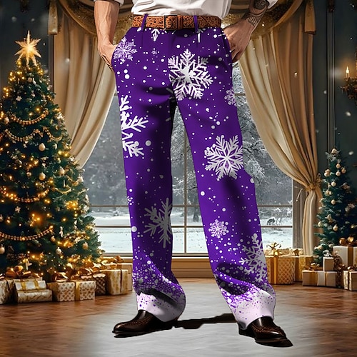 Natale Per uomo Fiocco di neve Pantaloni Eleganti Misura del girovita medio Casual All'aperto Casa Feste Cerniera Tasca Pantaloni a gamba dritta Estate Primavera Autunno Stampa 3D Nero Rosso Blu