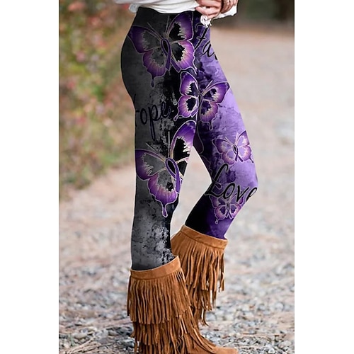 Per donna Leggings Vacanza Vintage Stile Etnico Lunghezza intera Vita Alta Grafico Farfalla Stampa 3D Asciugatura Rapida Traspirabilità Morbido Alta elasticità All'aperto Casa Casual Giallo Blu Viola