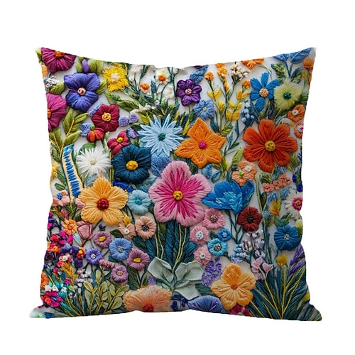 Federa per cuscino con motivo floreale, stampa piatta 2D, morbida e confortevole, con ricamo finto, per soggiorno, divano, camera da letto, decorazione per la casa