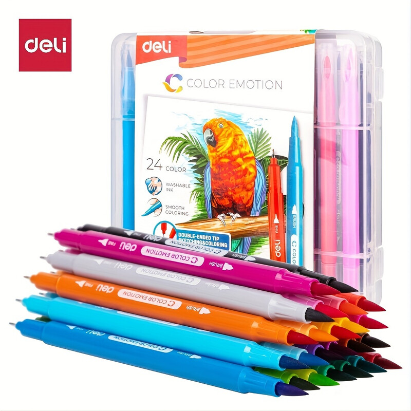 Deli Doppelspitze Aquarellmarker, Kunstbedarf, gemischte Farben, 24er-Set