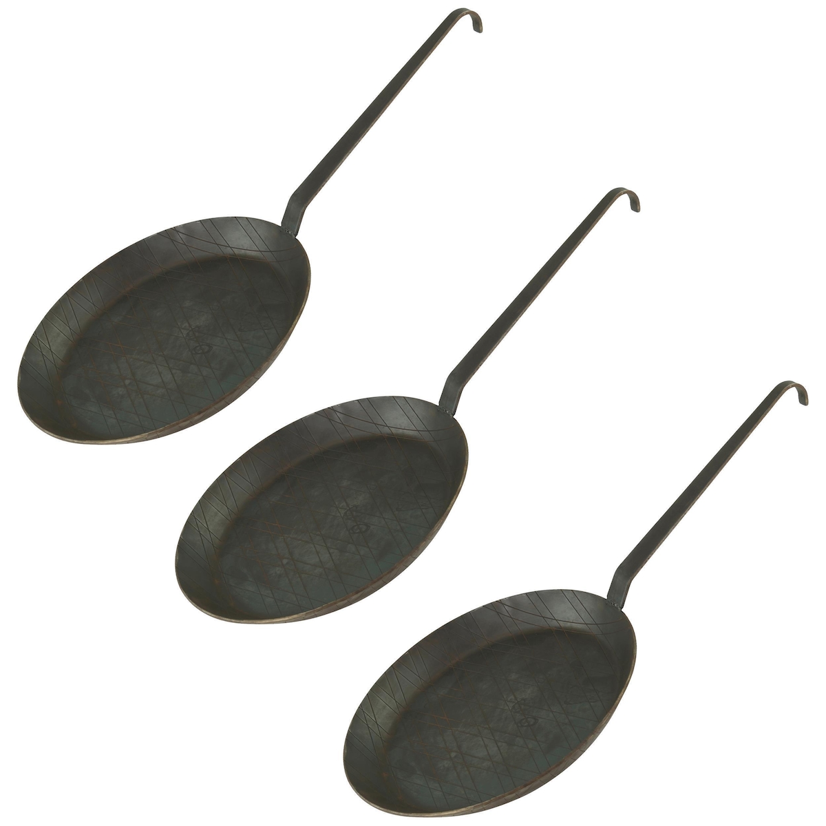 GVK ECO Schmiedeeiserne Brat- und Servierpfanne 3 Stück Ø 28 cm mit Hakenstiel