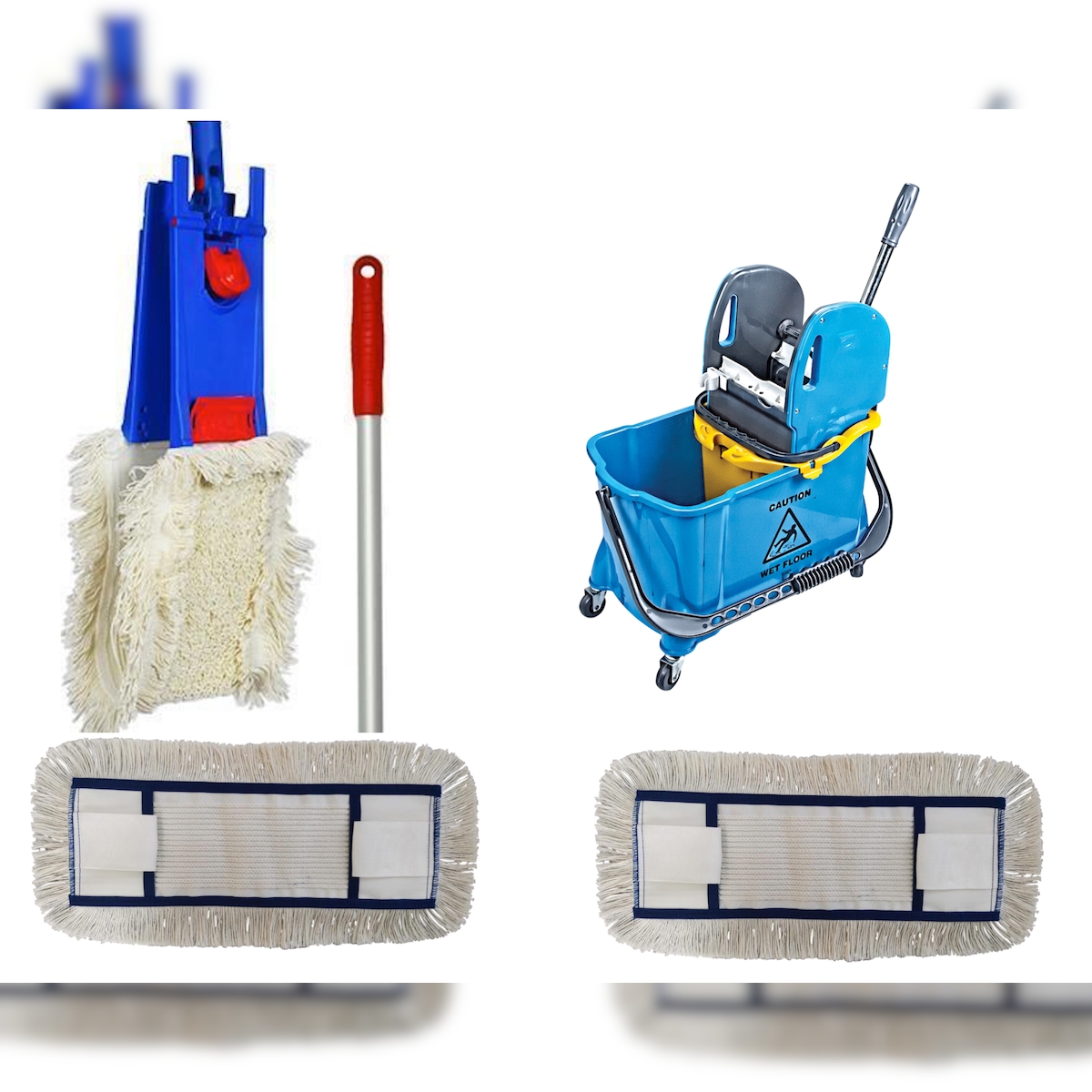 CleanSV Wischset blau Laschenmop 40 cm, Reinigungswagen18 Liter Eimer und Schmutzfangeimer, Presse, Bodemwischer