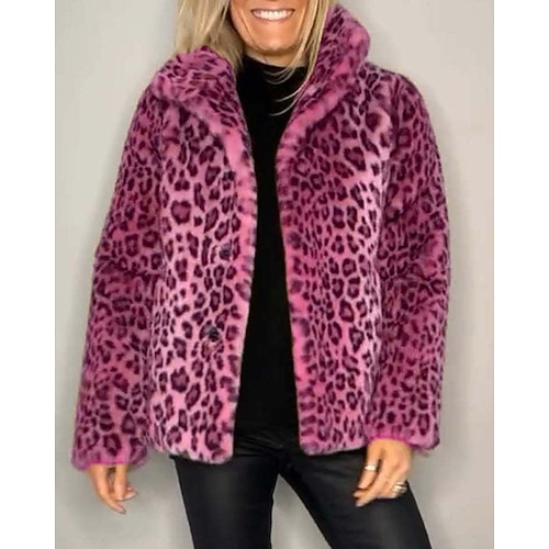 Damen Wintermantel Jacke Warm Bequem Tasche Lässig Leopard Urlaub Alltagskleidung Ausgehen Wochenende Kurz Umlegekragen Normale Passform Langarm Oberbekleidung Rosa Blau Braun Herbst Winter