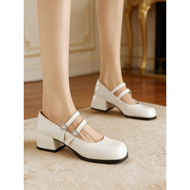 Women's Burgundy 1950s Vintage Patent Faux Leather Mary Jane Pumps – Elegant Block Heel Shoes with Double Strap and Rhinestone Buckles, Perfect for Formal and Daily Occasions