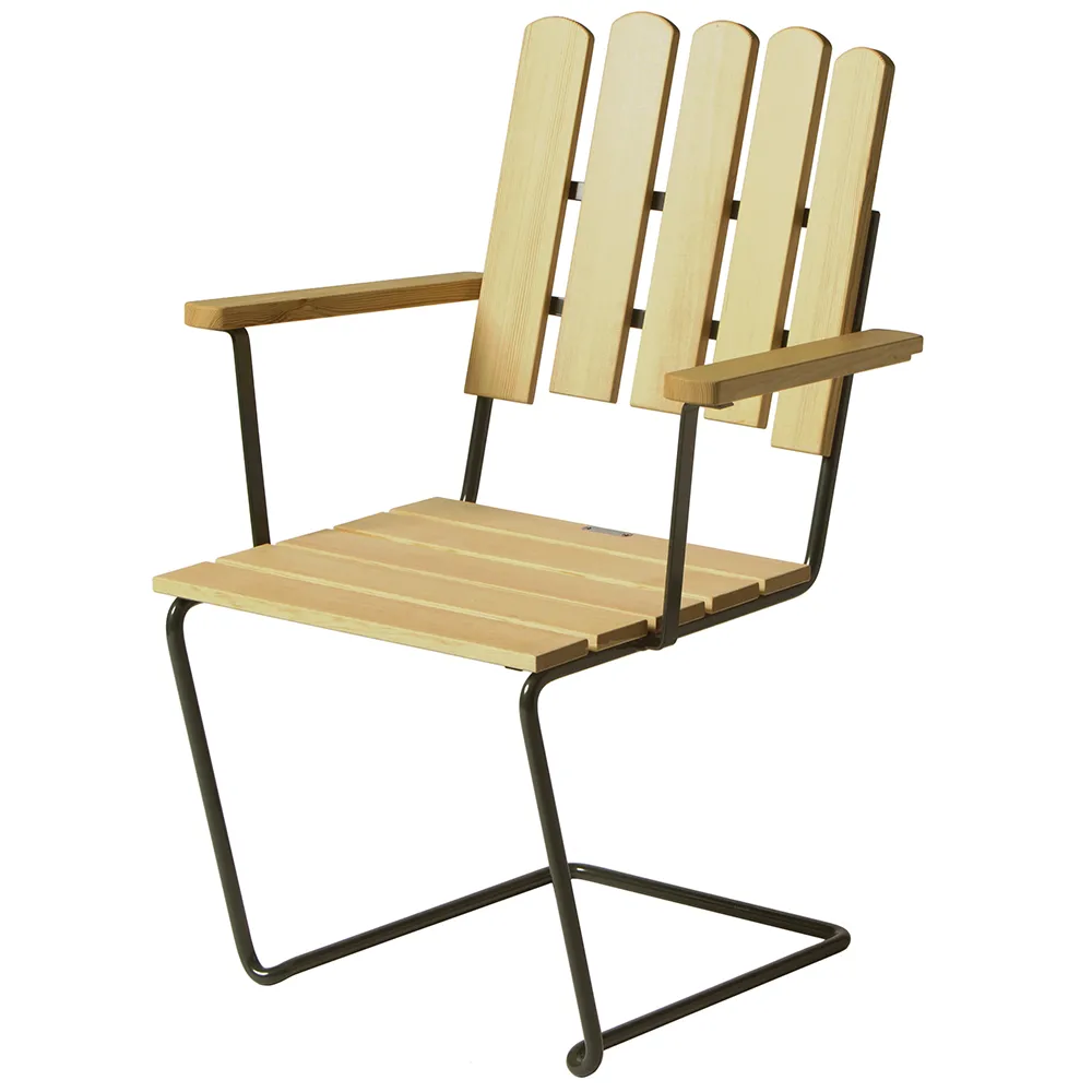 Grythyttan Stålmöbler, A2 nojatuoli Öljytty mänty / vihreä runko