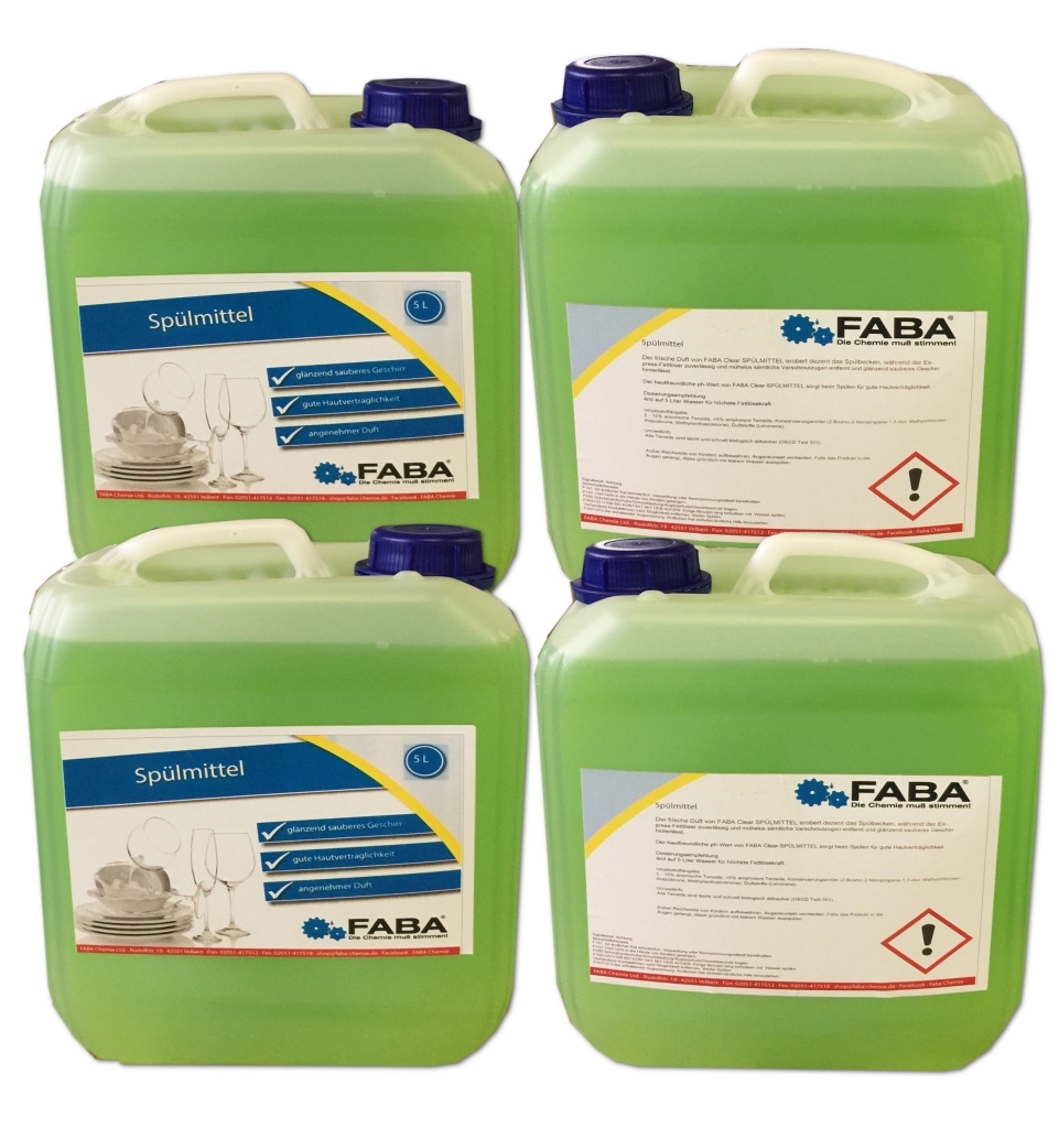 FABA Chemie 4 x 5 L Geschirrspülmittel Konzentrat Spülmittel Handspülmittel