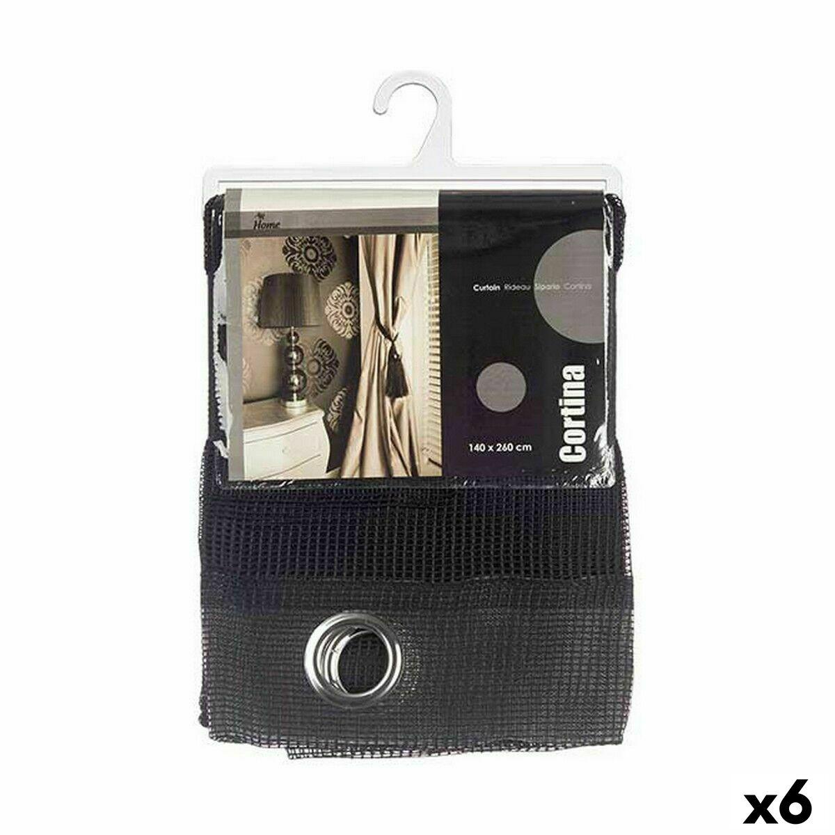 Gardin med ringe - Sort rist 140 x 260 cm (6 stk)