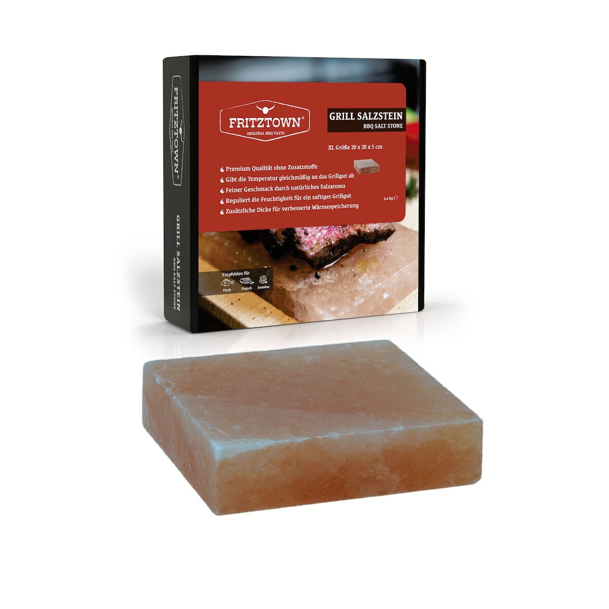 FRITZTOWN Deluxe XL Grill Salzstein - 20x20x5 cm - 4,5 kg - Extra Stark - Feiner Geschmack durch Kristallsalz