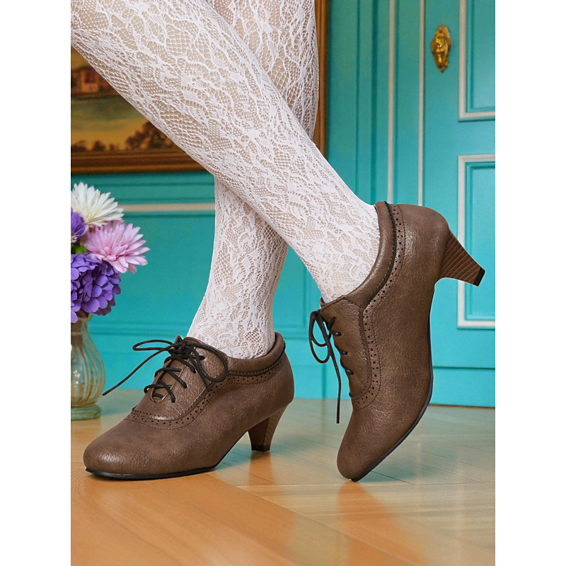 Women's Brown Lace-Up Oxford Heels with Low Block Heel and Brogue Detailing, 1950s Vintage Edwardian Style Dress Shoes for Cosplay, Retro Parties Daily Fashion Outfits