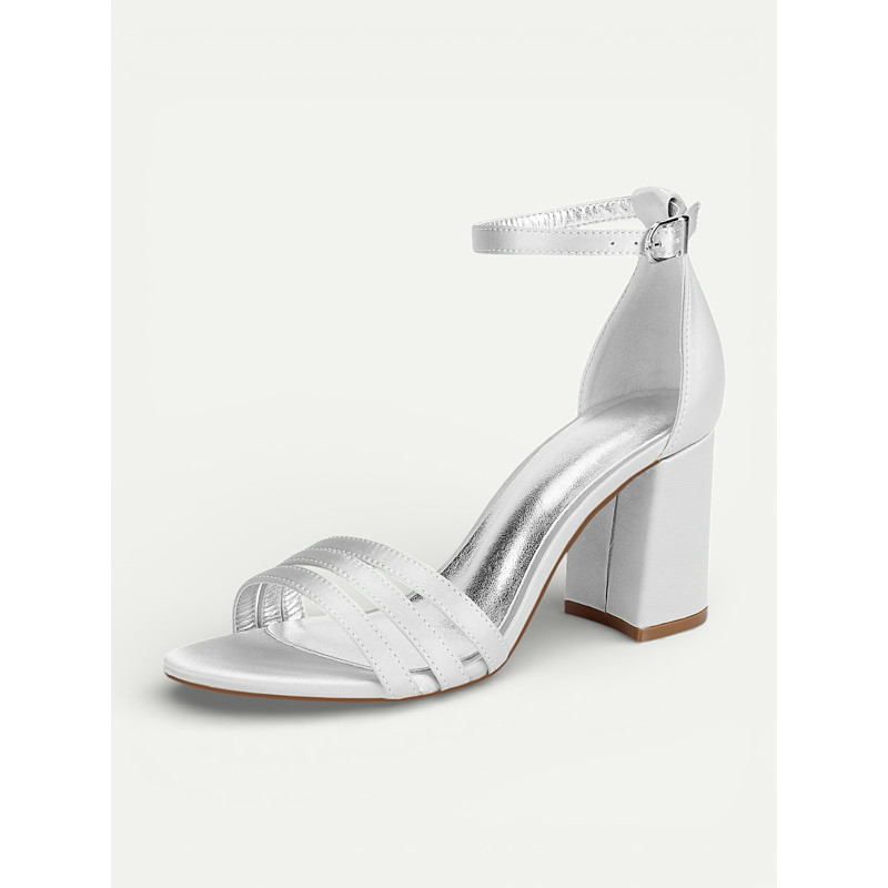 Women's Elegant Strappy Stiletto Bridal Sandals with Ankle Strap, Open-Toe High Heel Wedding Shoes for Brides, Minimalist White Ceremony Heels