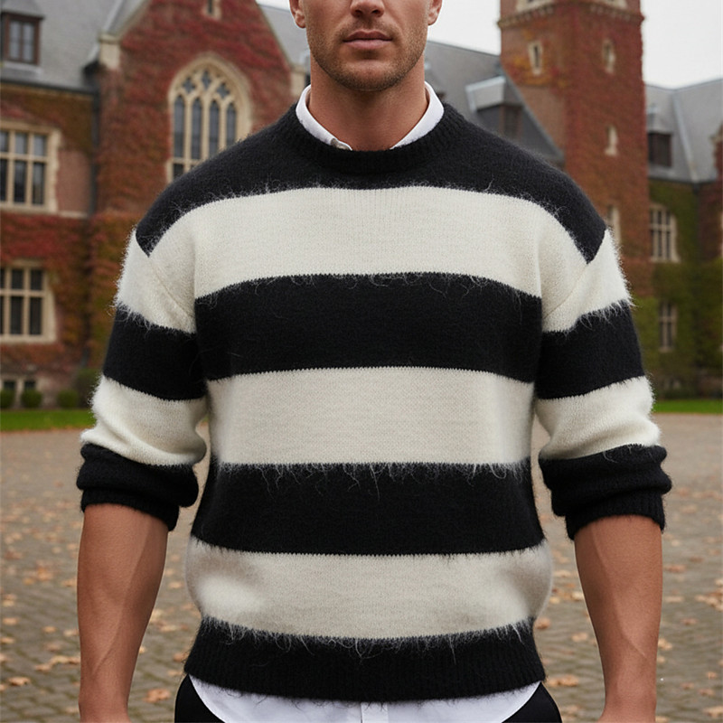 Men's Christmas Sweaters Pullover Sweater Jumper Knit Sweater Ribbed Knit Regular Tops Knitted Stripe Crew Neck Fashion Basic Christmas Vacation Clothing Apparel Fall Winter White Blue M L XL