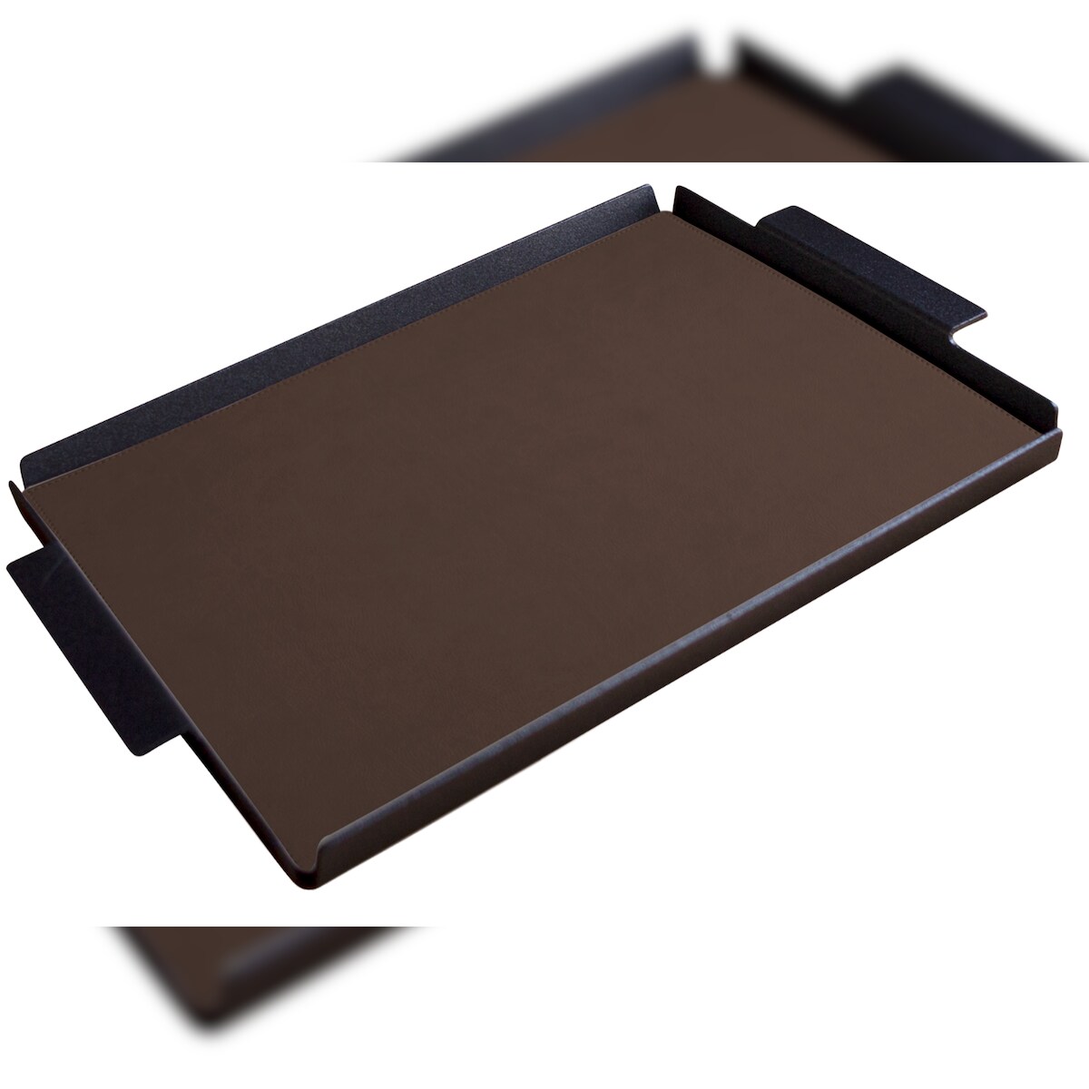 Stil Casa, 6er Set Serviertabletts, schwarz lackiertes Aluminium, Deckel aus genähtem, laminiertem Polyurethan, 45x65xh. 0,2 cm, Farbe braun.