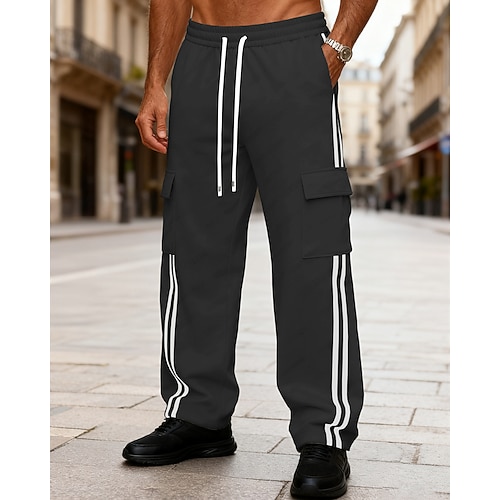 Herren Baggy-Jogginghose Cargo-Jogginghose Jogginghose Hose Kordelzug Tasche Elastischer Bund Gestreift Komfort Sport im Freien Täglich Mode Lässig Schwarz Weiß Mikroelastisch