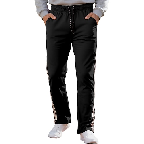 Herren Jogginghose Hose Gerade geschnittene Sweatpants Kordelzug Tasche Elastischer Bund Farbblock Gestreift Komfort Sport im Freien Täglich Mode Lässig Schwarz Wein Mikroelastisch