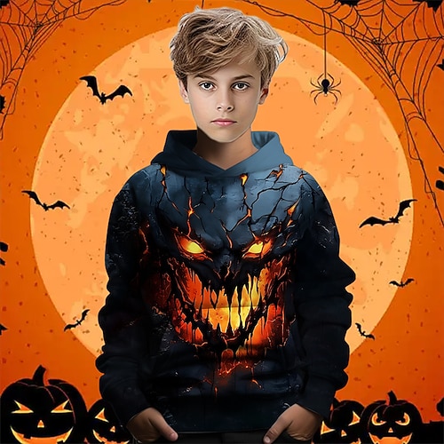 Halloween Jungen 3D Grafik Hoodie Langarm Frühling Herbst Mode Streetwear Kinder 4-12 Jahre mit Kapuze Outdoor Casual Täglich Regular Fit