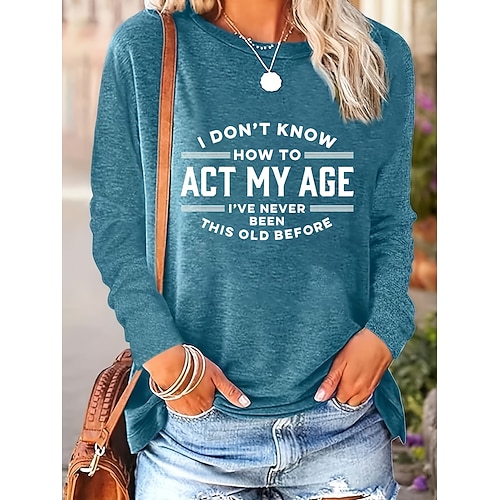 Per donna Maglietta Grafico Lettera Vintage Moda Elegante Manica Lunga Girocollo Top Regolari Quotidiano Weekend Stampato Blu marino Blu Grigio Primavera Autunno