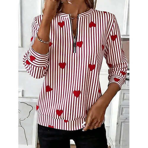 Per donna Felpe con cerniera Cuore Grafico Moda Casual Manica Lunga Girocollo Top Regolari Streetwear Abbigliamento Quotidiano Cerniera Stampato Rosso Estate Primavera Autunno