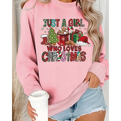 Natale Per donna Blusa Albero di Natale Casual Manica Lunga Girocollo Top Regolari Quotidiano Ferie Stampato Nero Bianco Rosa Rosso Arancione Autunno Inverno