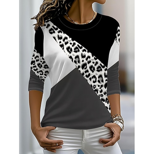 Per donna Maglietta Grafico Leopardo Geometrico Vintage Moda Elegante Manica Lunga Girocollo Top Regolari Quotidiano Weekend Stampato Nero e grigio Autunno Inverno