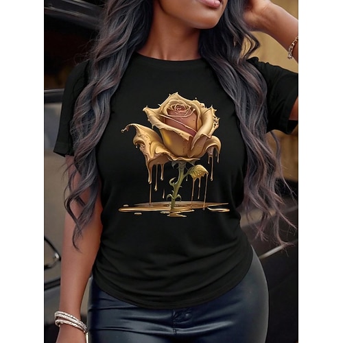 Per donna Maglietta Floreale Grafico Piante Vintage Elegante Classico Manica Corta Girocollo Top Regolari Quotidiano Uscire Weekend Stampato Nero Rosso Estate
