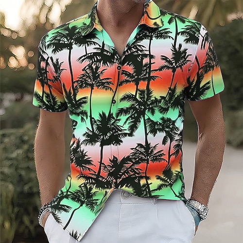 Per uomo Albero di Cocco Gradiente di Colore Piante Tropicali Camicia hawaiana estiva Camicia con Bottoni Camicia Aloha Manica Corta Hawaiano Vacanza Estate Primavera Collo ripiegato Stampa 3D