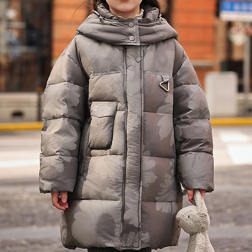 Kinder Mädchen Daunenjacke Daunenjacke Blumen Sport Tasche warm halten Winddicht Outdoor Mantel Oberbekleidung 4-12 Jahre Winter Rote Purpur Hellgrau