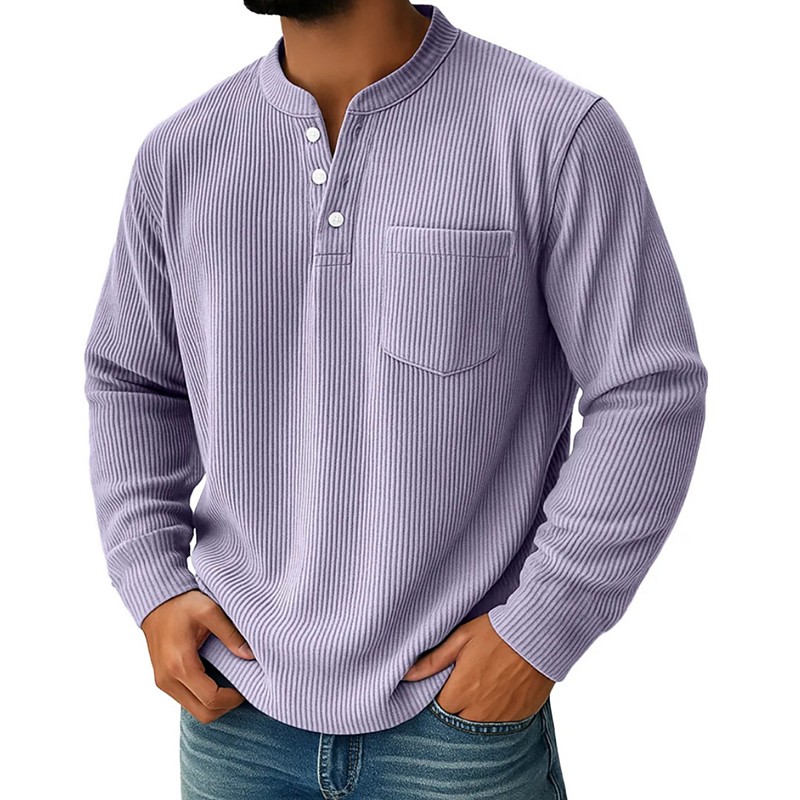 Men's Corduroy Shirt Henley Shirt Tee Long Sleeve Solid Color Plain Textured Fashion Designer Casual Pocket Buttons Warm Henley Casual Daily Outdoor Summer Fall Winter Light Blue Burgundy Navy Blue
