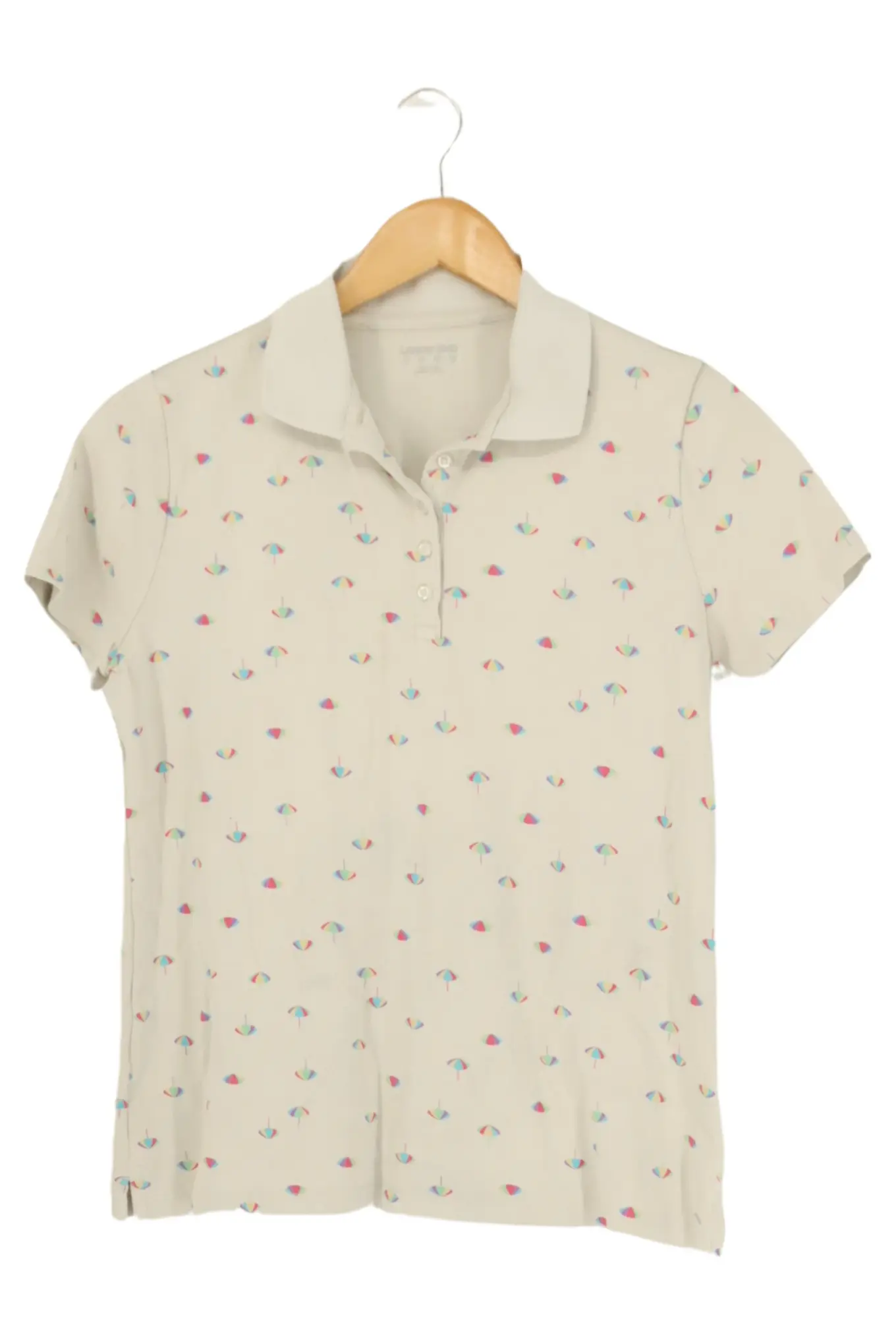 LANDS' END Poloshirt Damen Gr. S Weiß mit bunten Parasol-Muster
