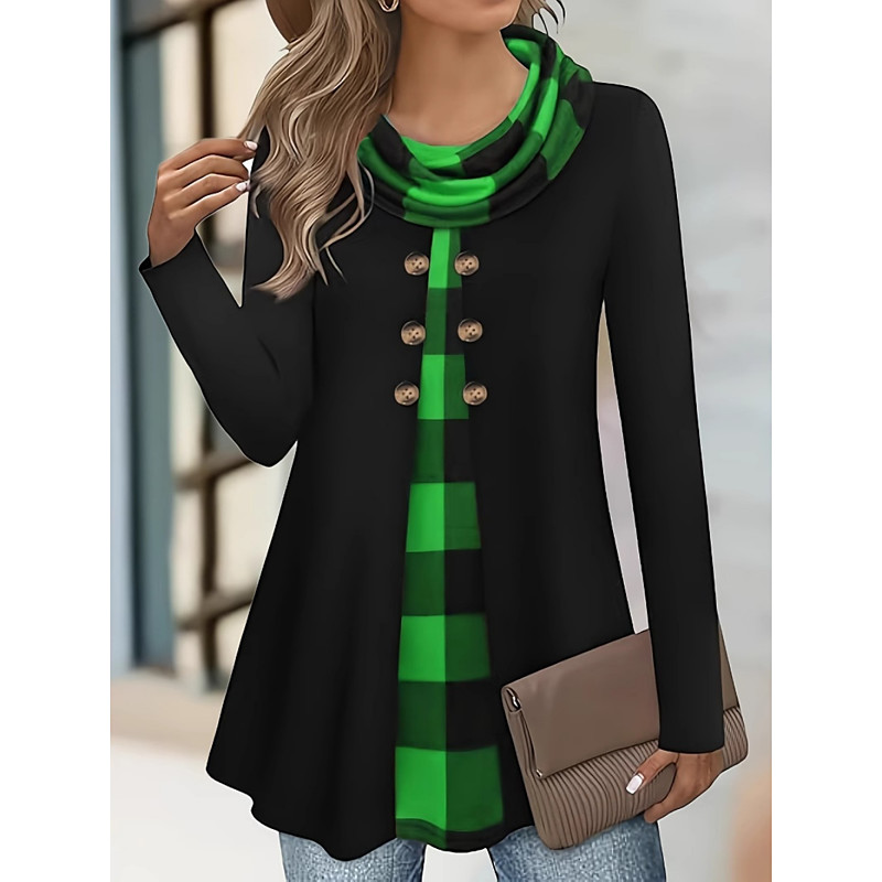 Women's Shirt Blouse Plaid Stylish Basic Casual Long Sleeve Square Neck Regular Tops Daily Holiday Patchwork Print Green Spring Fall Winter