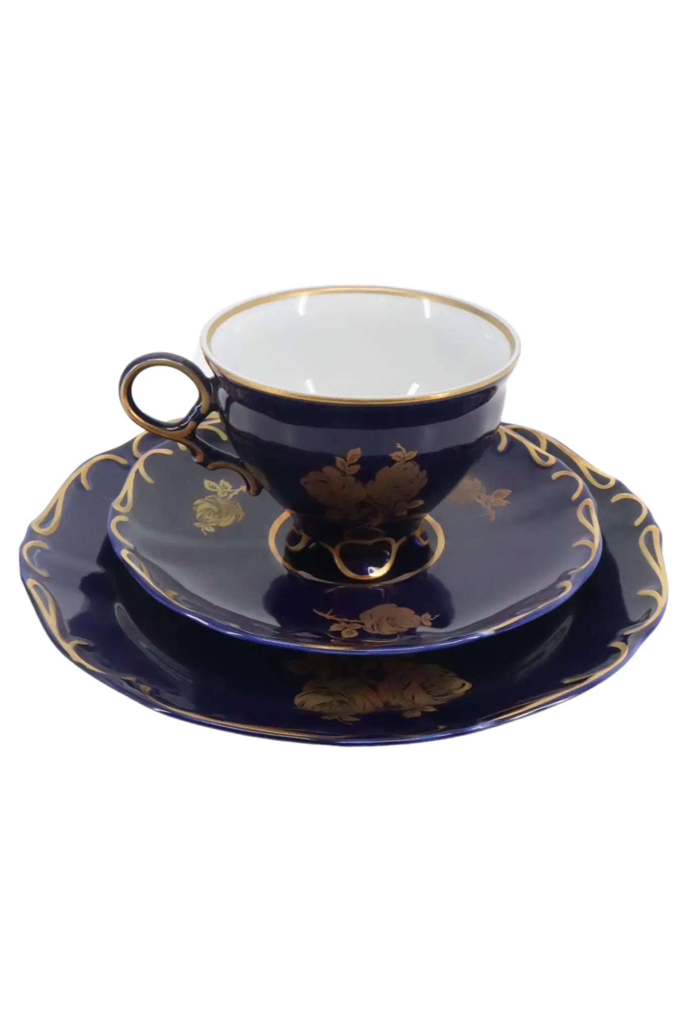 LICHTE PORZELLAN Sammelgedeck 3-teilig blau Retro Kwiaty