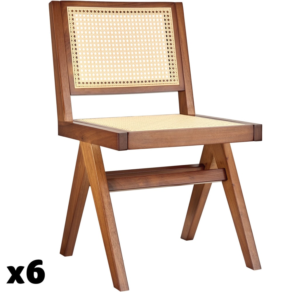 Set di 6 sedie in legno intreccio viennese, design retro rovere scuro
