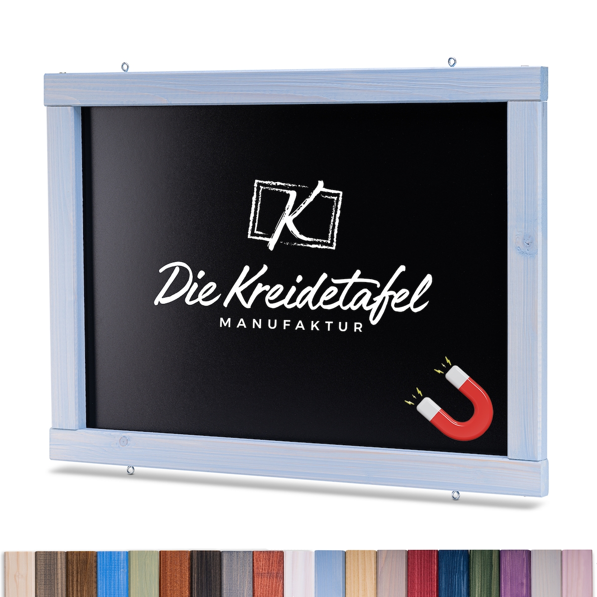 Die Kreidetafel Manufaktur Magnetische Kreidetafel - Magnettafel mit Holzrahmen / Glockenblumenblau 100x50cm