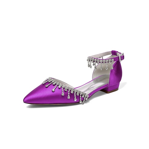Weiße Brautschuhe mit Knöchelriemen aus Satin für Damen – spitze Hochzeitsschuhe mit Kristallanhänger für die Braut