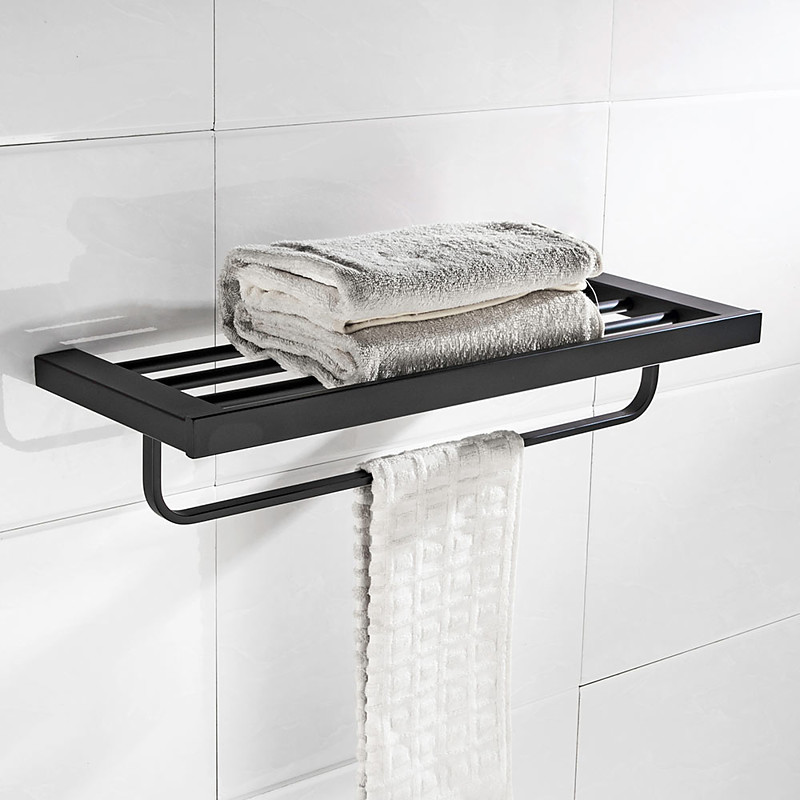 Multifunction Bathroom Accessory 1pc Include Towel Bar/Robe Hook/Towel Rack/Toothbrush Holder/Soap Dishes and Bath Shelf Stainless Steel Wall Mounted Matte Black