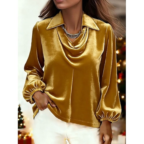 Natale Capodanno Per donna Velluto Tinta unica Elegante Essenziale Manica Lunga Scollo a V Top Regolari Giallo Primavera Autunno Inverno