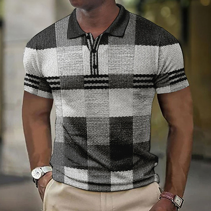 Men's Plaid Waffle Polo Shirts Golf Shirt Short Sleeve Polo Shirts Collared Shirts Vintage Casual Vacation Wear Formal Wear Festival Wear Buttons 3D Print Yellow Light Green Blue