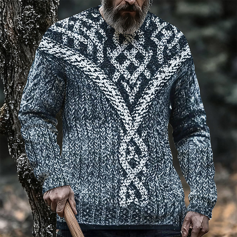 Men's Graphic Viking Pullover Sweater Jumper Knitwear Crewneck Retro Vintage Casual Vacation Daily 3D Print Knitting Keep Warm Long Sleeve Spring Fall Winter Green Dark Blue Light Blue