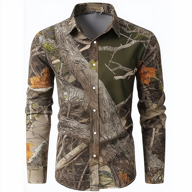 Men's Camo Camouflage Shirt Button Up Shirt Long Sleeve Vintage Retro Outdoor Camping Hiking Hunting Spring Fall Turndown 3D Print Linen Like Shirt Black Army Green Camouflage