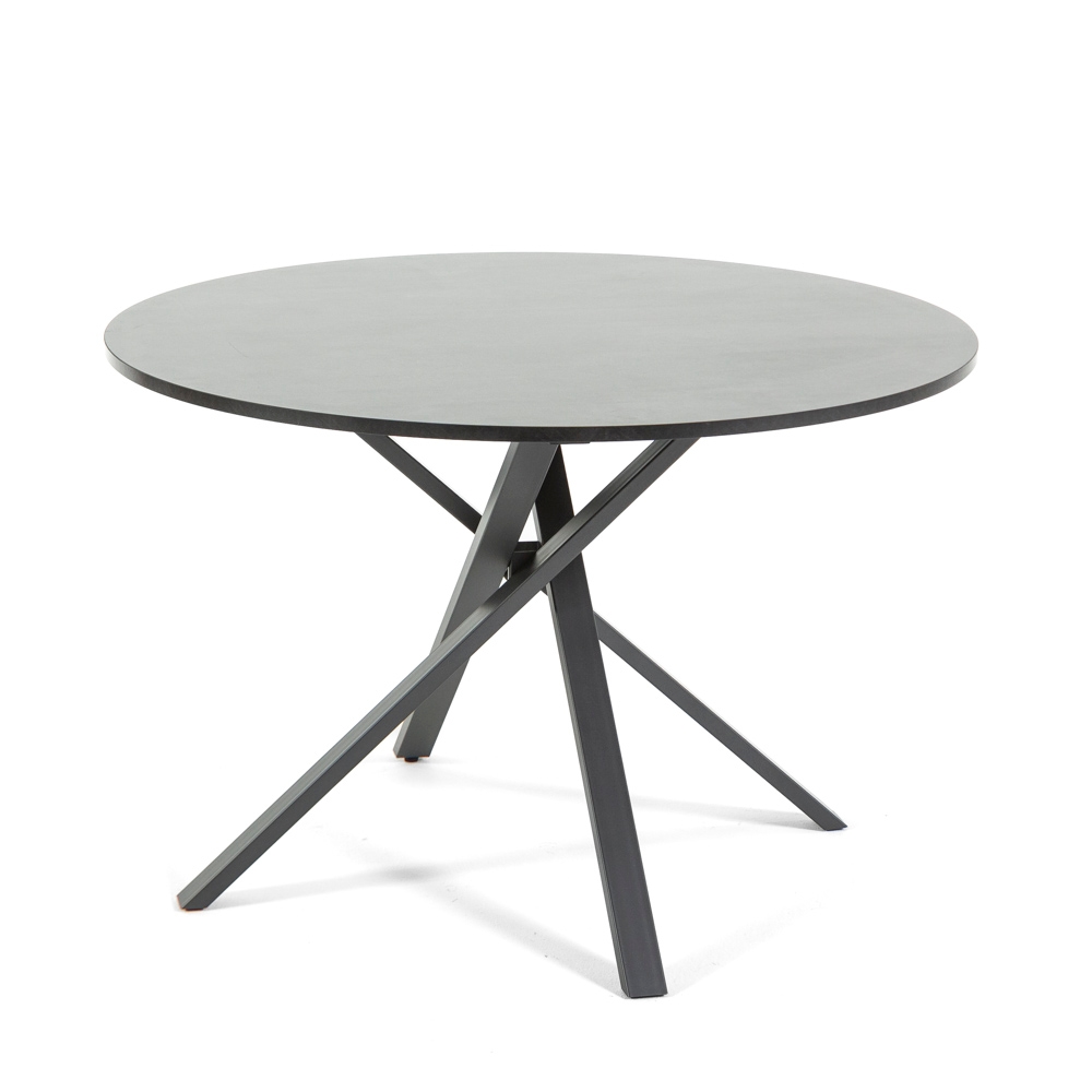 RATTATAN Runder Tisch ⌀110 cm, Metallkreuzbeine, Laminatplatte, Esstisch für 4 Personen, X-Beine, moderner Stil–Carlo–Granit