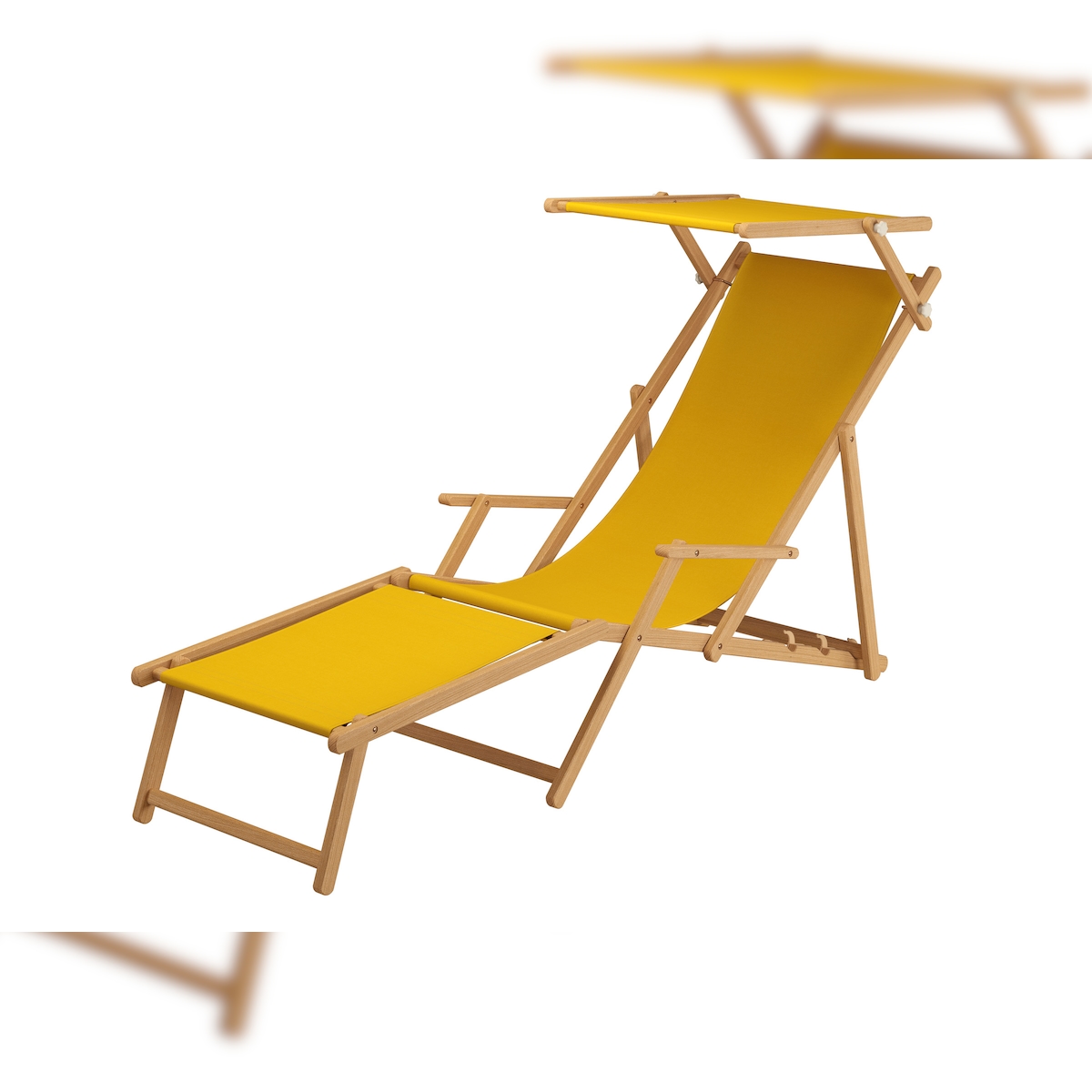Erst-Holz Liegestuhl gelb Fußteil Sonnendach Kissen Tisch Gartenliege Holz Sonnenliege Buche 10-302NFSTKH