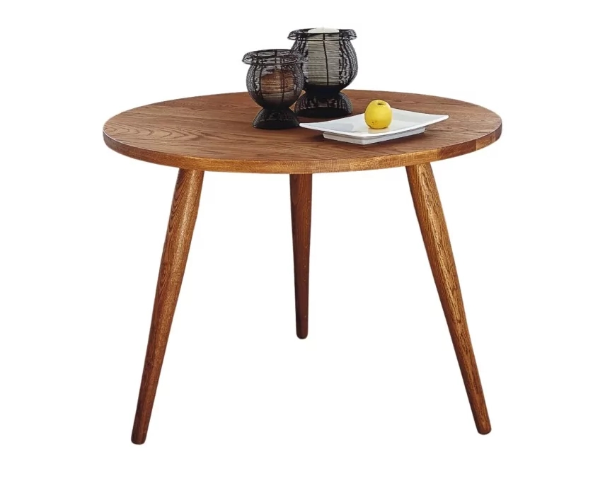 Ócrea Runder Tisch aus massiver Eiche mit 3 Beinen. Beistelltische