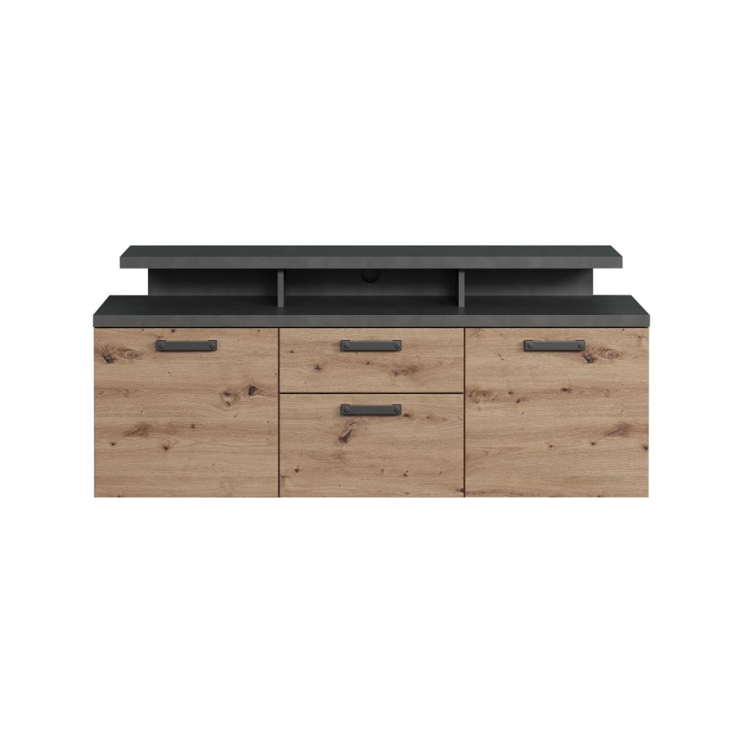 Follow TV Tisch 3 Türen, 1 Schublade, 2 Regale Eiche Dekor.