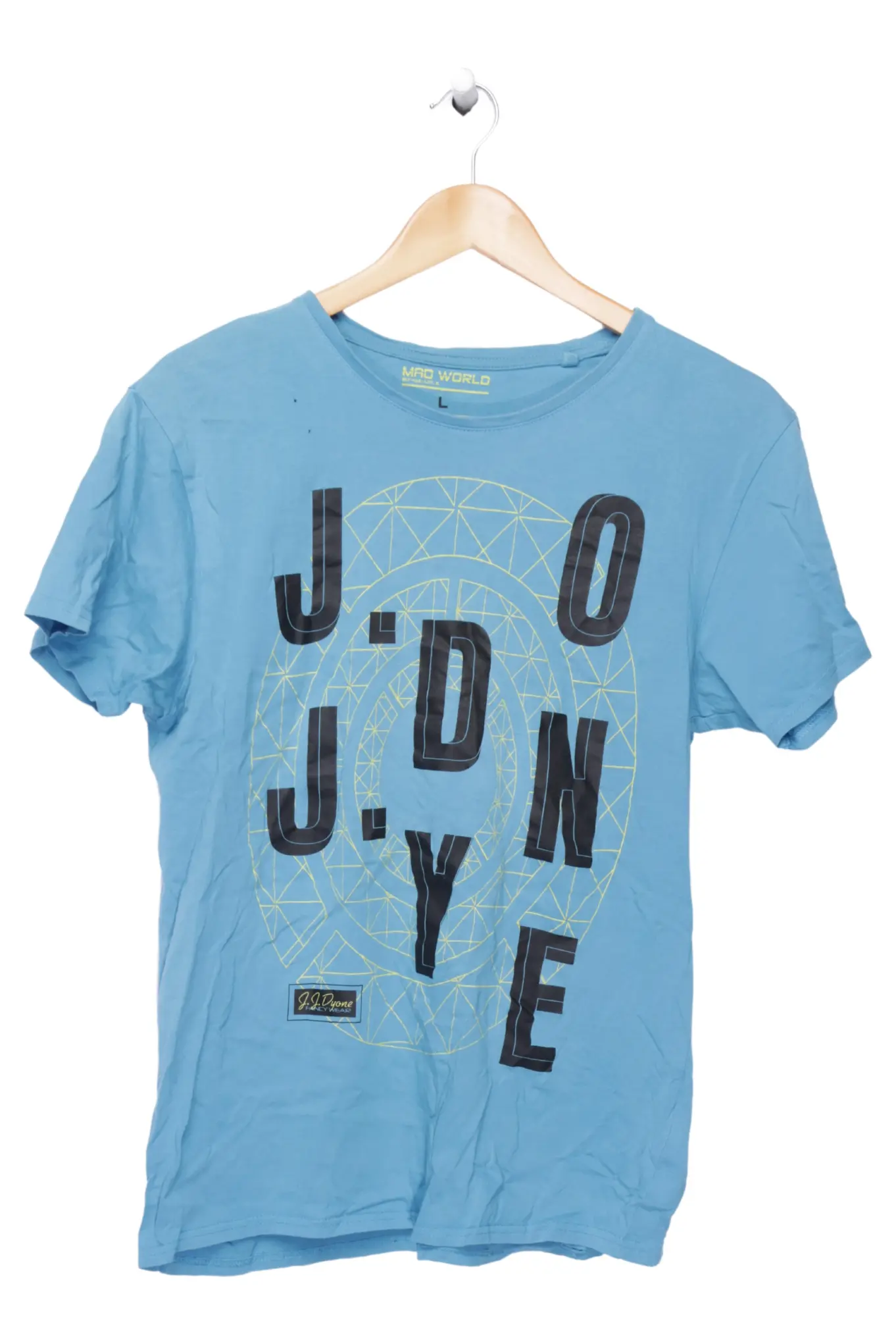 MAD WORLD T-Shirt Damen Gr. L Blau Kurzarm Basic Grafik