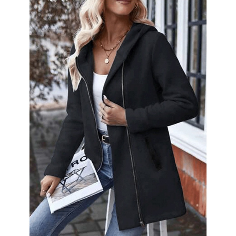 Women's Hoodie Jacket Comfortable Breathable Zipper Pocket Casual Plain Vacation Street Casual Daily Wear Zipper Regular Hooded Regular Fit Long Sleeve Outerwear Black Red Gray Spring Fall