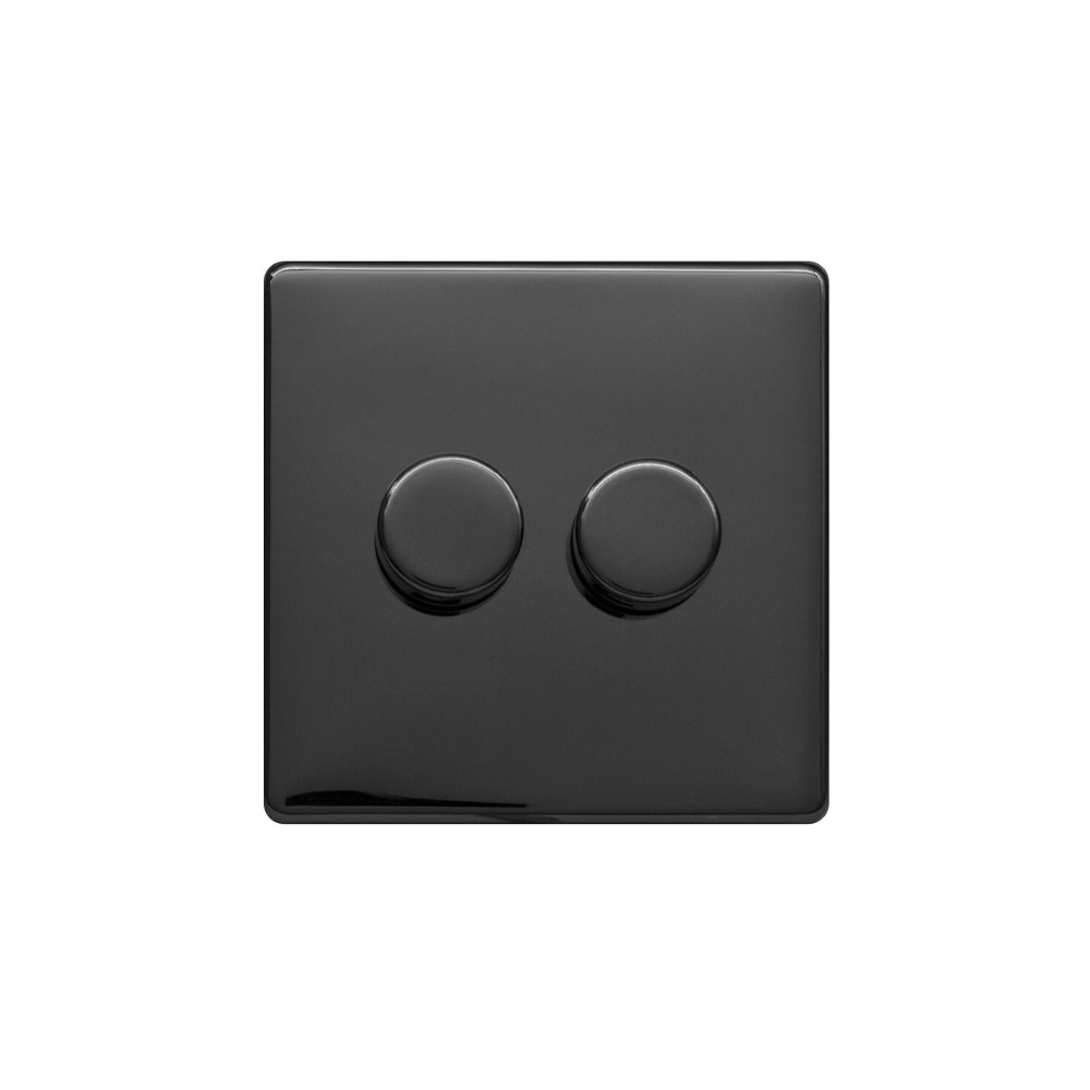 Lieber Black Nickel 2 Gang 2 -Way Intelligent Dimmer 100W LED (250w Halogen/Incandescent) - Size: 86mm x 86mm x 2.95 mm