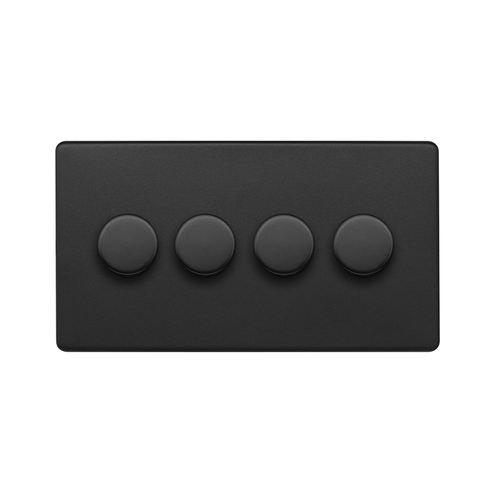 Soho Lighting Matt Black 4 Gang 2-Way Intelligent Dimmer 150W LED (300w Halogen/Incandescent)