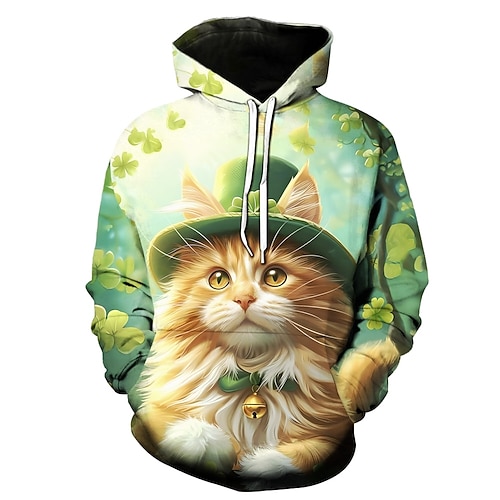 Festa di San Patrizio Gatto Trifoglio irlandesi Felpa con cappuccio 3D Lucky Clover Tasca frontale Grafica Per Da coppia Per uomo Per donna Per adulto giorno di San Patrizio Stampa 3D Feste Casual