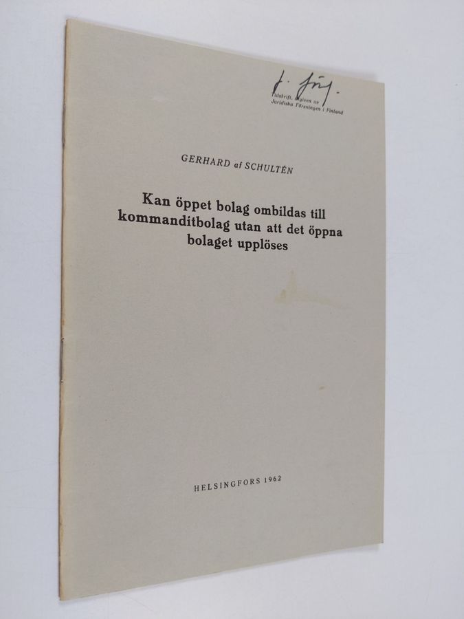 Gerhard af Schulten : Kan öppet bolag ombildas till kommanditbolag utan att det öppna bolaget upplöses