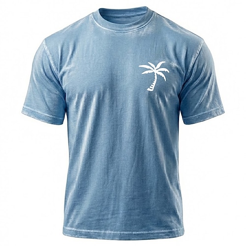 T-shirt lavata e rovinata con grafica di palme, blu vintage, misto cotone, abbigliamento, abbigliamento s m l xl xxl xxxl